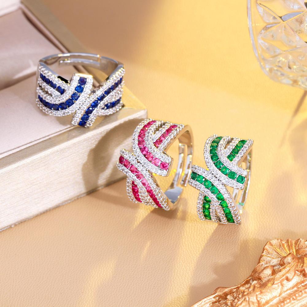 Bright Atmospheric Luminous Ruby Ring Three-Dimensional Irregular Strip Open Ring Ring
