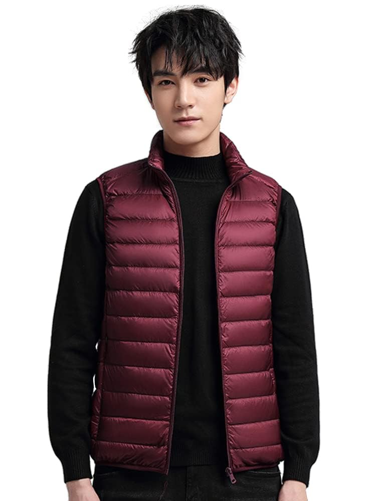Wnodruke Ultralight Down and Packable WN002 Men's Vest, Lightweight, Warm, Compact, (XL, Red)