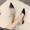 Baotou Niche French Sandals 2025 New Summer Flat Bottom Pointed Soft Sole Low Heel Black Rivet Women's Shoes
