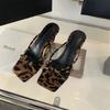 Open-toed Wedge Heel Pinch Flip-flops Shoes Women's Shoes Wear 2025 Summer High-heeled French Sandals Leopard Print Sandals