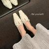 Niche Design French Rivet Lace Square Head Single Shoes 2025 Spring Height Increase Low Heel Inside and Outside Full Leather Ballet