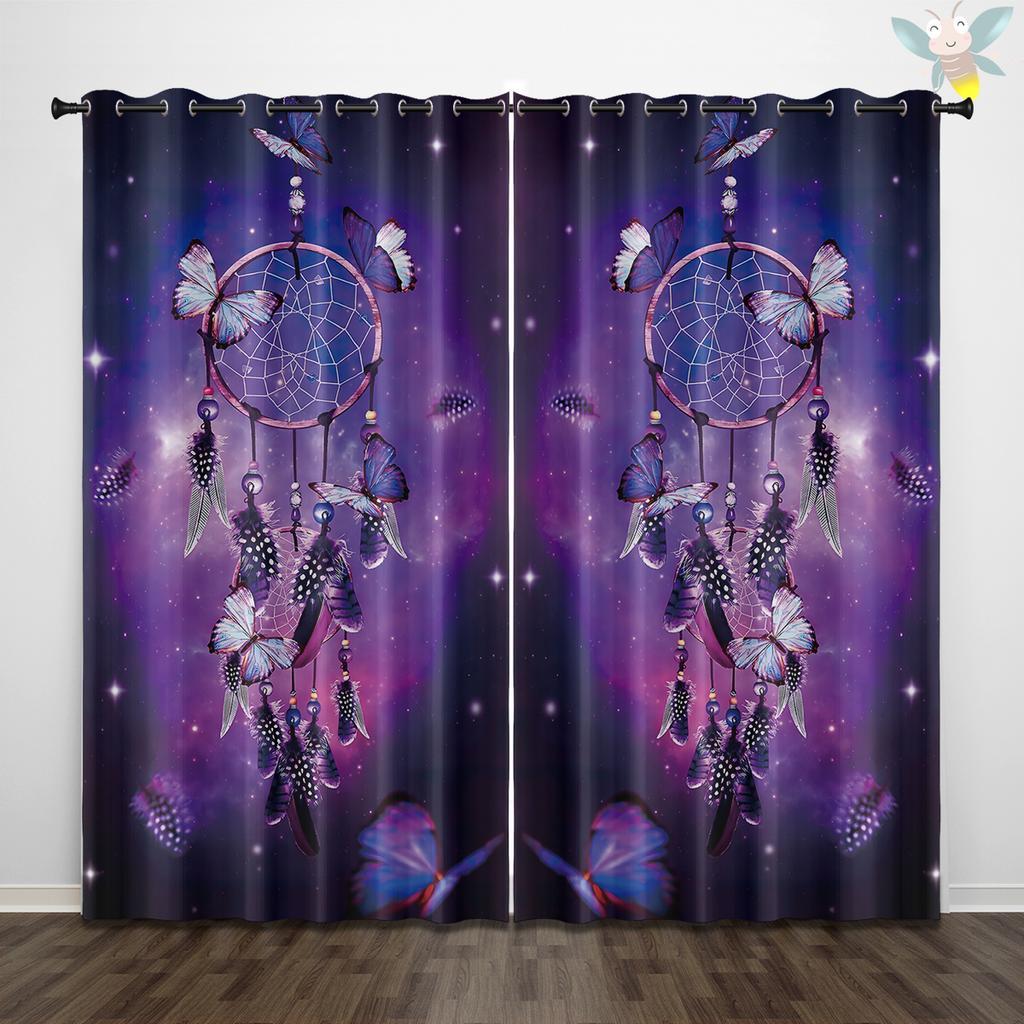 2 Pieces of Dreamcatcher Starry Sky Pattern Printed Curtains, Decorating Bedrooms, Living Rooms, and Game Rooms