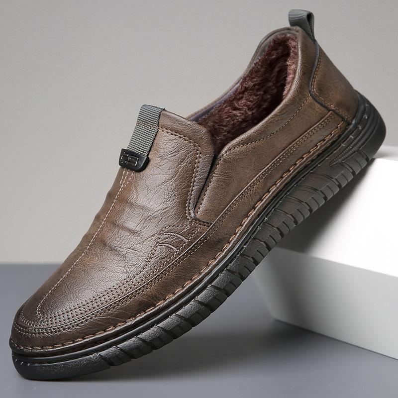 Men's Leather Shoes Autumn and Winter Casual Leather Shoes Men's Driving Shoes Men's Non-slip Velvet Warm Business Leather Shoes
