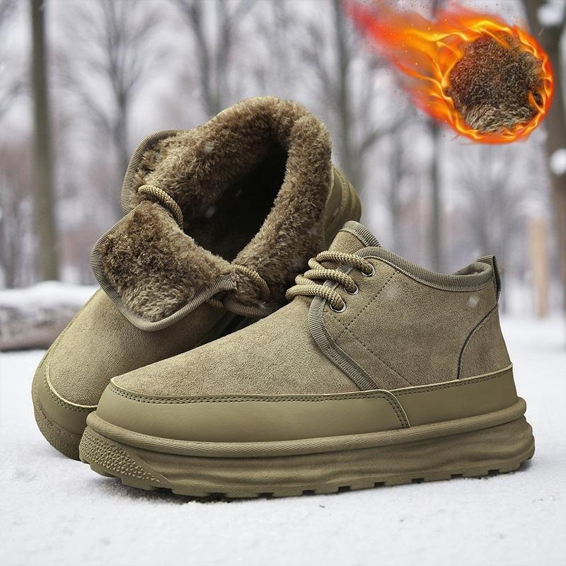 Winter Warm Thick Snow Fashion Boots Mens Lace Up High Top Cotton Shoes Thick Bottom Anti Slip Thick Bottom Outdoor Short Boots