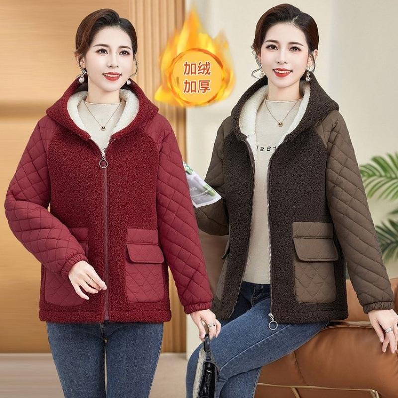 New Granular Velvet Cotton-padded Clothes, Old Women's Cotton-padded Clothes, Medium Women's Winter Clothing, Lamb Wool Jacket Thickened