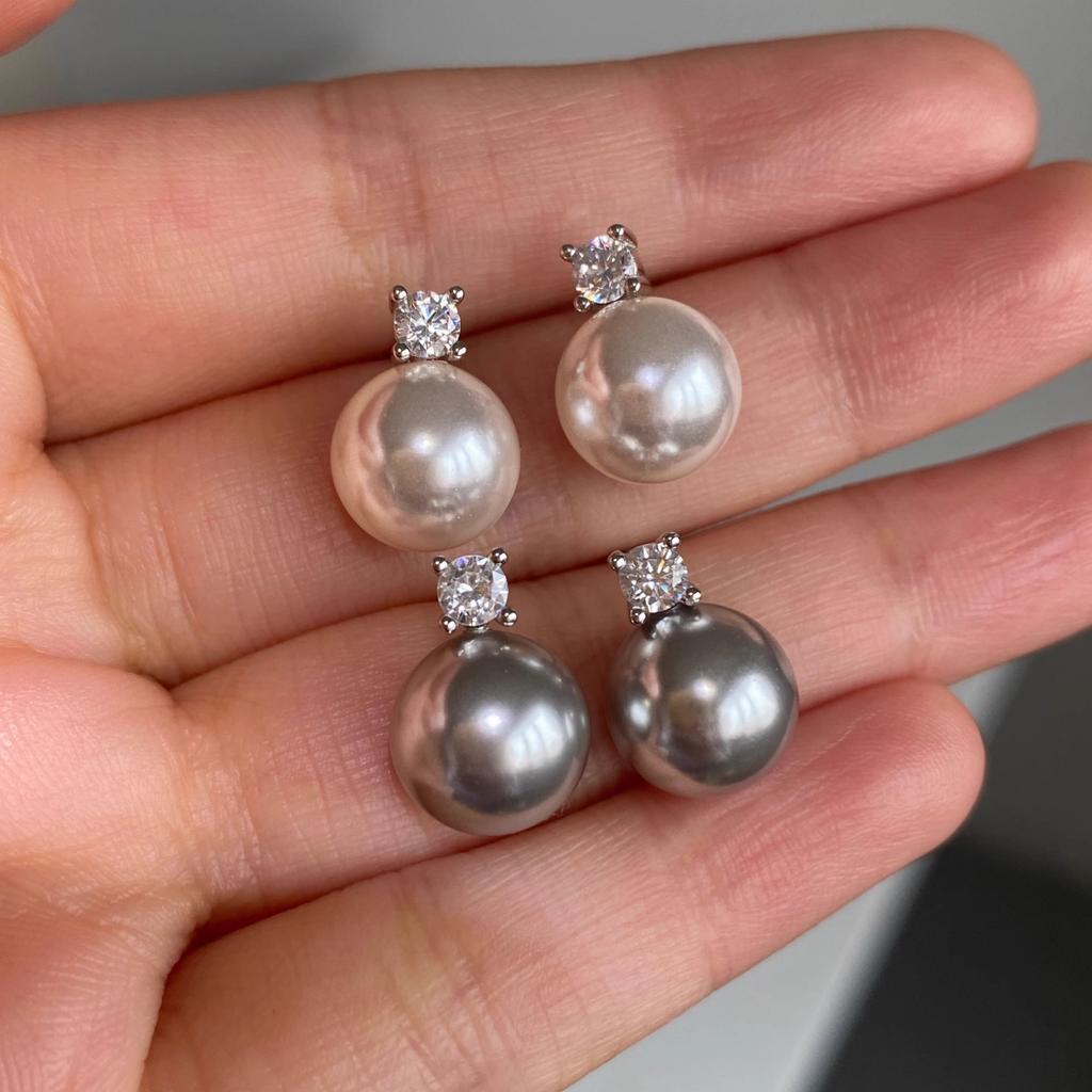 Inlaid Diamond Pearl Stud Earrings Women's Temperament Senior Sense Small Bulb Design Autumn Winter Everyday Ear Jewelry