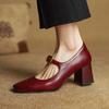 Casual Fashion Single Shoes Women's New Comfortable Large Size Small Leather Shoes Square Head High Heel Beef Tendon Soft Sole Low Top Thick Heel Le