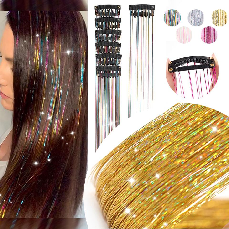 Synthetic 12 Pcs Colored Silk Hair Extensions for Women Clip-in Style Hair Extensions for Women Suitable for Holiday Events
