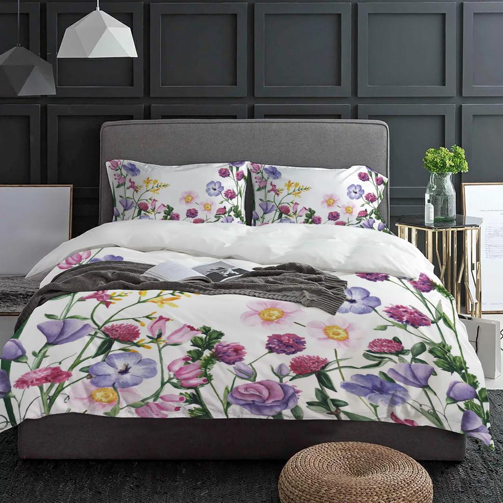 Color Flower Watercolor Plant Duvet Cover With Pillow Case Custom Comforter 3pcs Bedding Set Quilt Cover Double Bed Home Textile