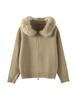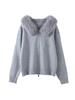 Women's Hooded Zipper Khaki Sweater Cardigan Fur Hat White Knitted Cardigan Furry Hat Knitted Jacket Women's Warm Black Sweater Lining Autumn Winter
