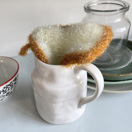 Introducing our premium acrylic dishcloths, perfect for all your kitchen cleaning needs. Made from high-quality acrylic yarn, these dishcloths are gentle yet effective on various surfaces such as chrome, copper, stainless steel, and more. The unique double-layer design of our dish brush ensures durability and long-lasting use, outperforming ordinary sponges.