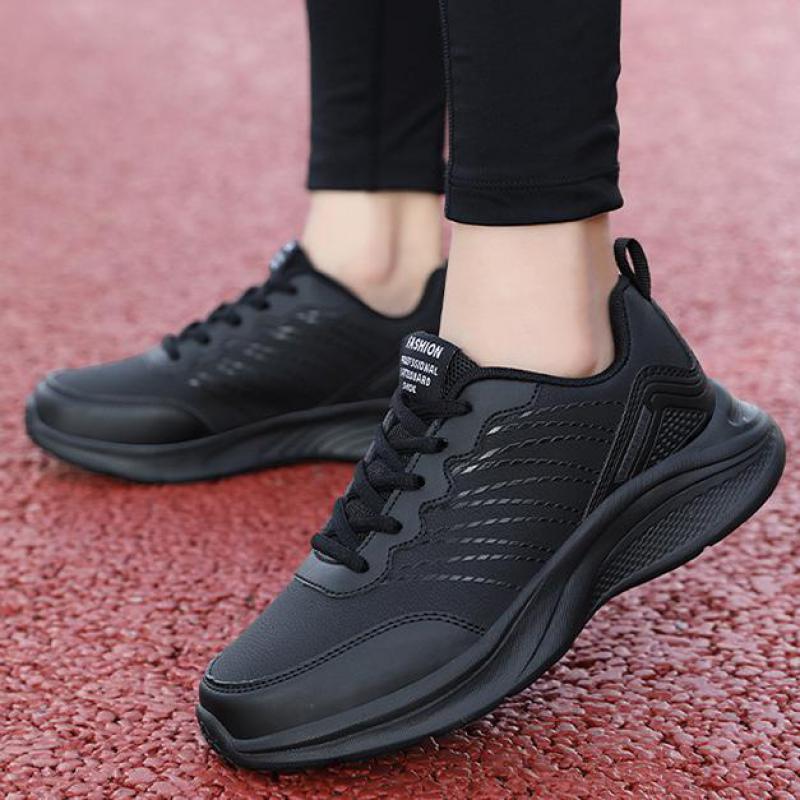 Autumn Winter Leather Sneakers Women Black Casual Shoes Women Waterproof Sports Shoes Lightweight Walking Shoes Ladies Sneakers