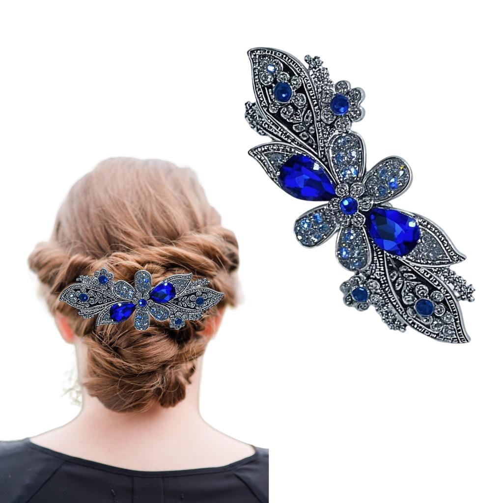 Diamante Hair Clips for Women Blue Crystal Floral Hair Accessories for Bridal Occasions and Special Events
