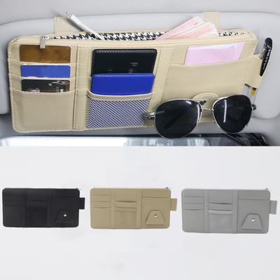 Car Sunshade Storage Multifunctional Storage Car Interior Glasses with Zipper Card Bag and Bill Clip