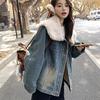 Lamb Fur Lapels and Velvet Padded Denim Cotton-padded Jacket Women's Winter New Korean Loose Retro Jacket