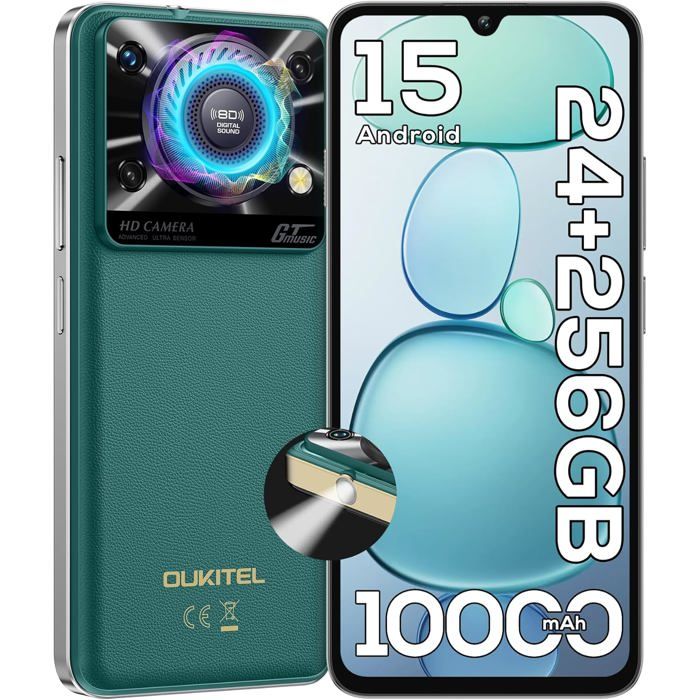 Portable Telephone 6.6" HD+ 120Hz Screen 12GB+256GB 5000mAh ITEL A70 Unlocked Smartphone 4G Android 13 Dual SIM/NFC/13MP Green