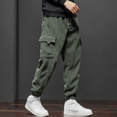 Fall Winter Men Cargo Pants Loose Drawstring Elastic Waist Plus Size Joggers Thickened Solid Color Pockets Fitness Streetwear Outdoor Travel