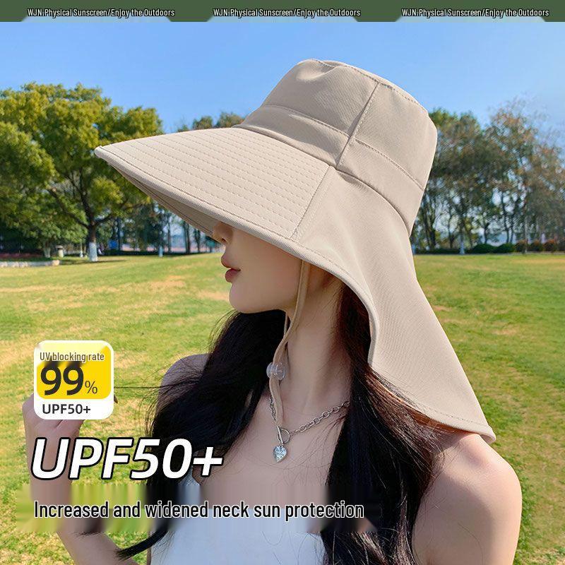 Women's Large Brim Summer Sun Hat with Shawl and UV Protection for Outdoor and Cycling