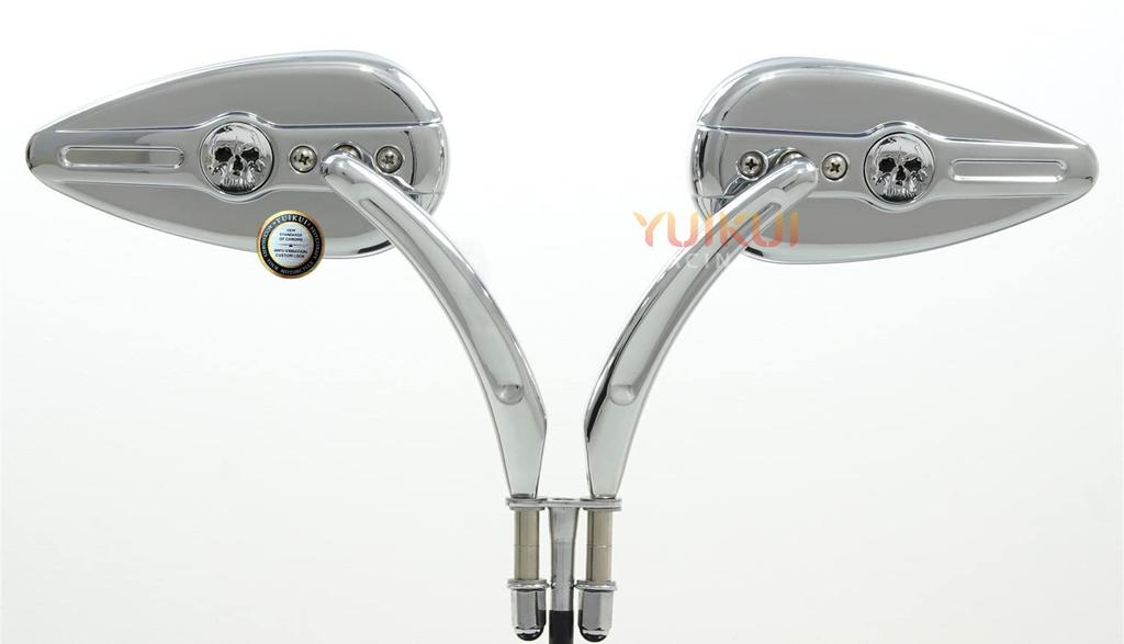 YUIKUI RACING Motorcycle Universal Mirror Motorcycle Aluminum Mirror Skull Chrome and Black Harley Mirror