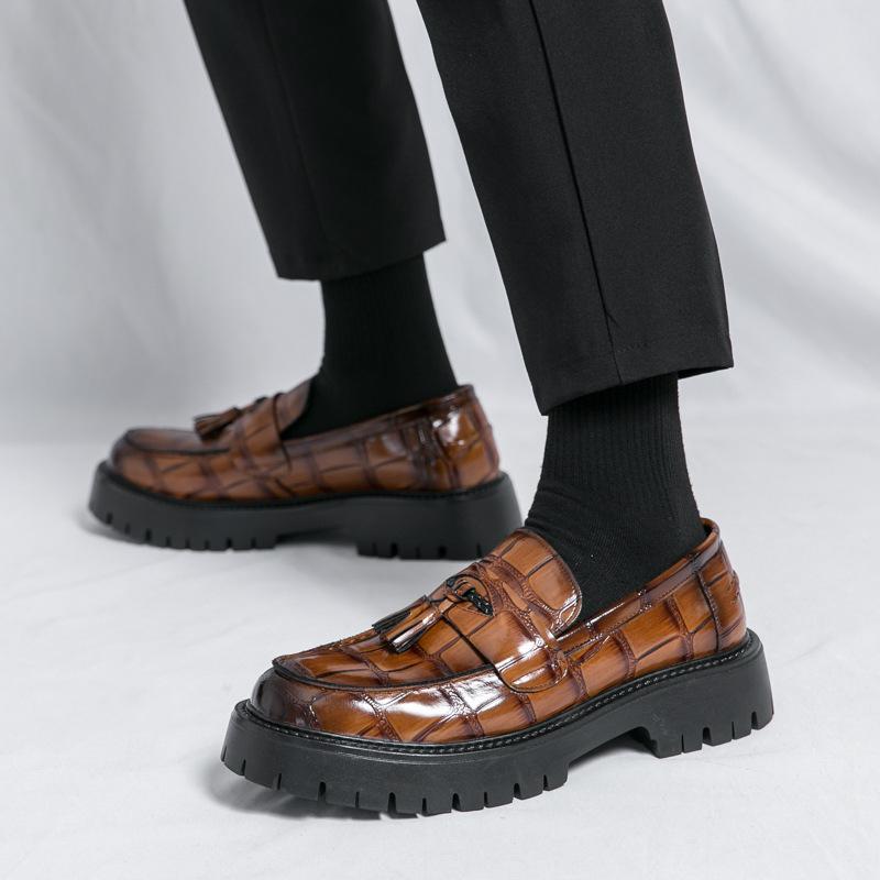 Thick-soled Fringed Loafers Men's Spring and Autumn Men's Leather Shoes British Heightening Trend Small Leather Shoes Overfitting Casual Shoes