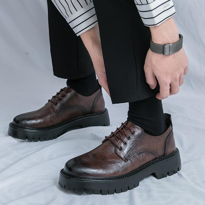 European and American Leather Shoes Men's Outdoor Street Commuting Casual Shoes Spring and Autumn New Fashion Retro Heightening Platform Business Men