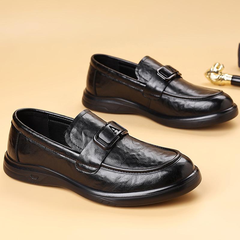 Casual Leather Shoes Men's 2025 New Trend Fashion Dress Business Leather Shoes British Style Soft Sole One Pedal Men's Shoes