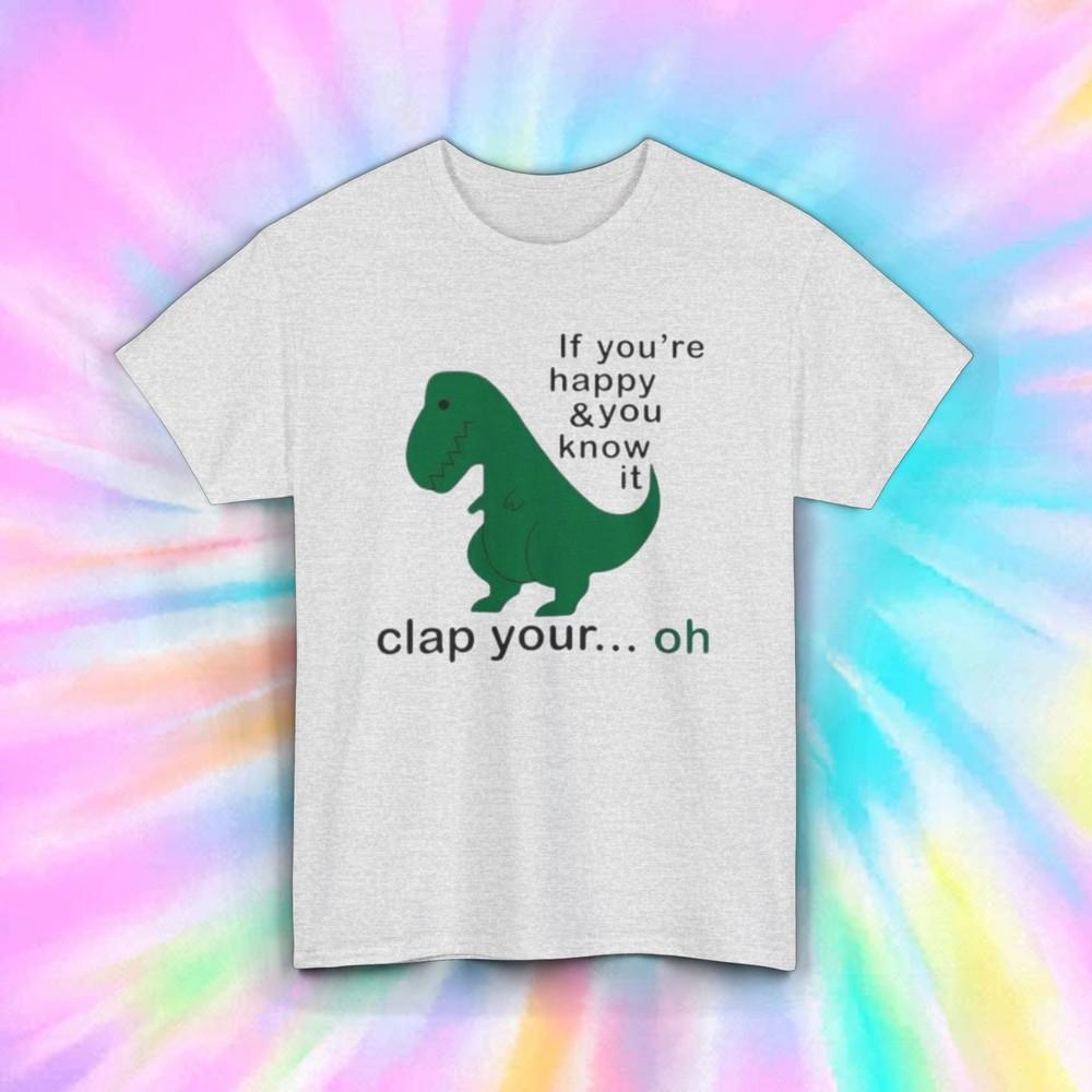 Happy T-Rex Clap Your Oh T-Shirt | Funny Dinosaur Graphic | Humorous Kids Tee