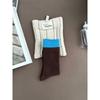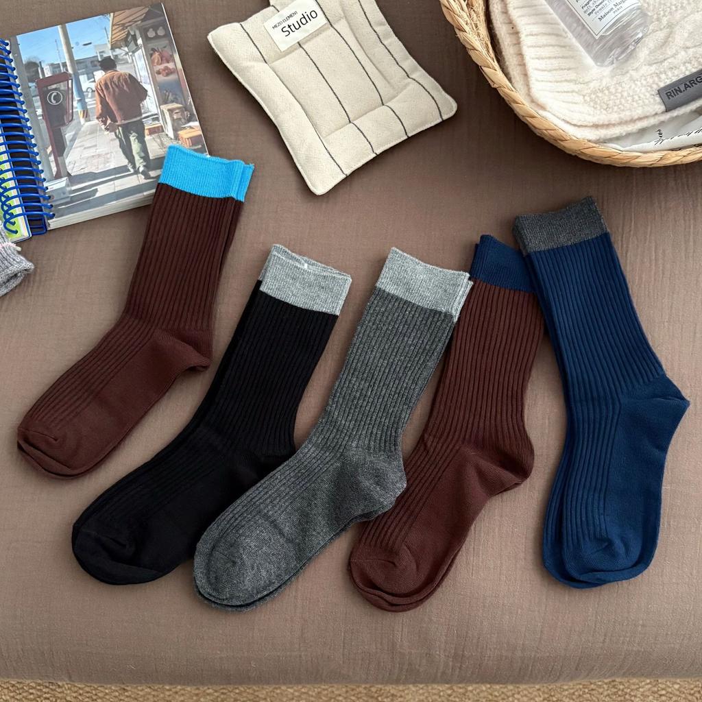 Autumn and Winter Retro Women's Socks In Navy Blue and Brown, Double-needle Mid-calf, Pile Socks, Versatile and Color-blocking for Women