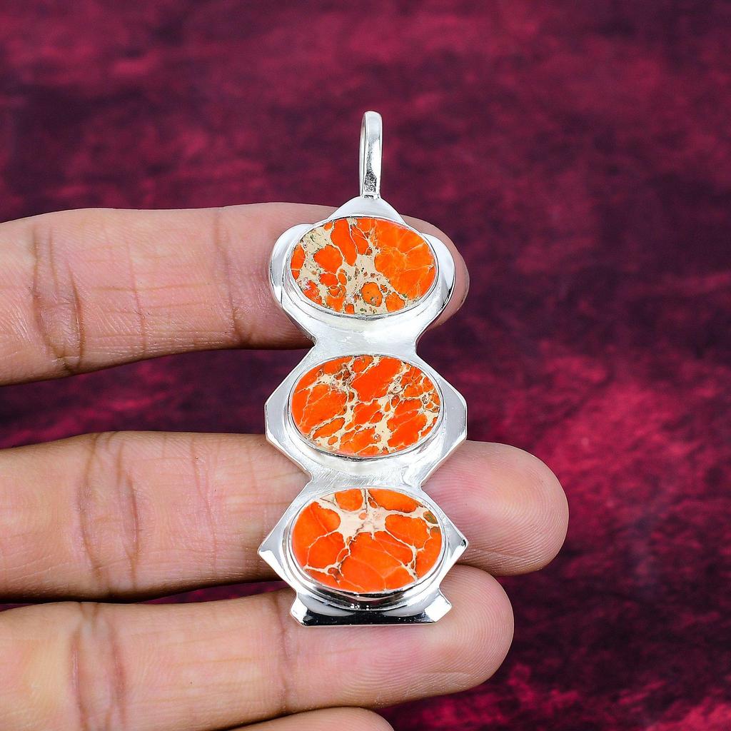 Orange Sea Sediment Jasper 925 Solid Sterling Silver Pendant, Handmade Gemstone Pendant Jewelry, Gifts For Wife Brand New Pendant
