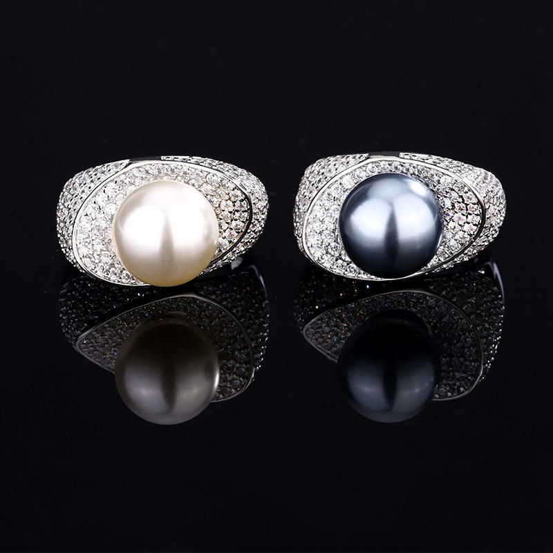 Jewelry Copper Platinum Plated Pearl Temperament Design Ring 12Mm