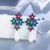 Needle Light Luxury Elegant Full Zircon Colored Flower Pearl Earrings Catwalk Water Drop Pearl Earrings Ear Jewelry