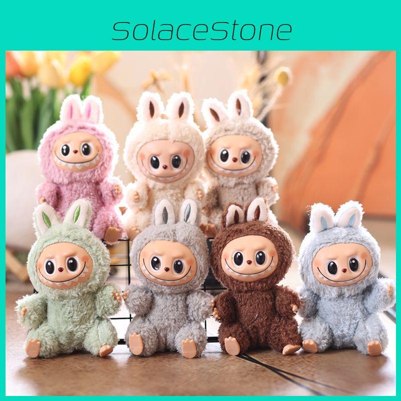 This plush Labubu charm measures is crafted from super-soft short plush material, providing a gentle tactile experience. Filled with durable PP cotton, it features vibrant colors including pink, beige, gray, and green, ideal for adding a playful touch to bags and backpacks. Suitable for travel or daily use, this charm resists wear and maintains shape with proper care. Wipe clean with a damp cloth to preserve its softness.
