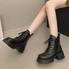 Thick-soled Martin Boots Women's 2025 Autumn New Single Boots Black Thin Boots Lace-up Locomotive Short Boots
