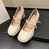 2025 Spring New Korean Version of Rhinestone Round Head Mary Jane Shoes Shallow Elastic Band Square Heel High Heel Women's Shoes