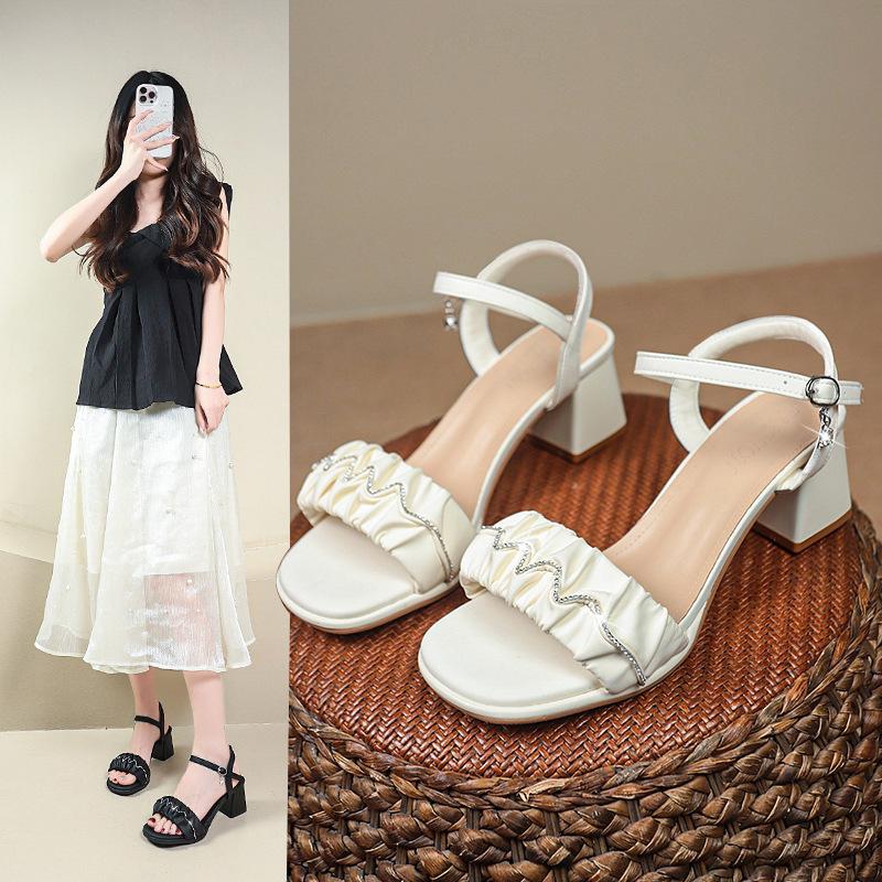 French Roman Sandals Women's 2025 New Summer Versatile Medium Heel Work Not Tired Feet with High Heels