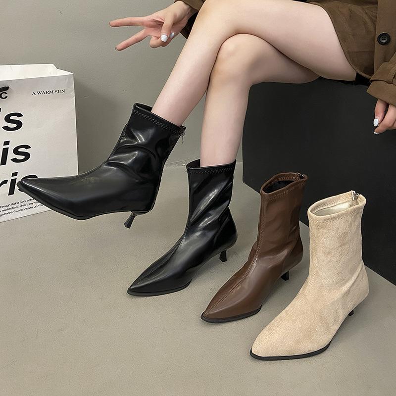 Autumn and Winter New Martin Boots Thin Heel Small Heel High Heel Suede Pointed Fashion Boots Thin Boots Chelsea Boots Short Boots
