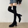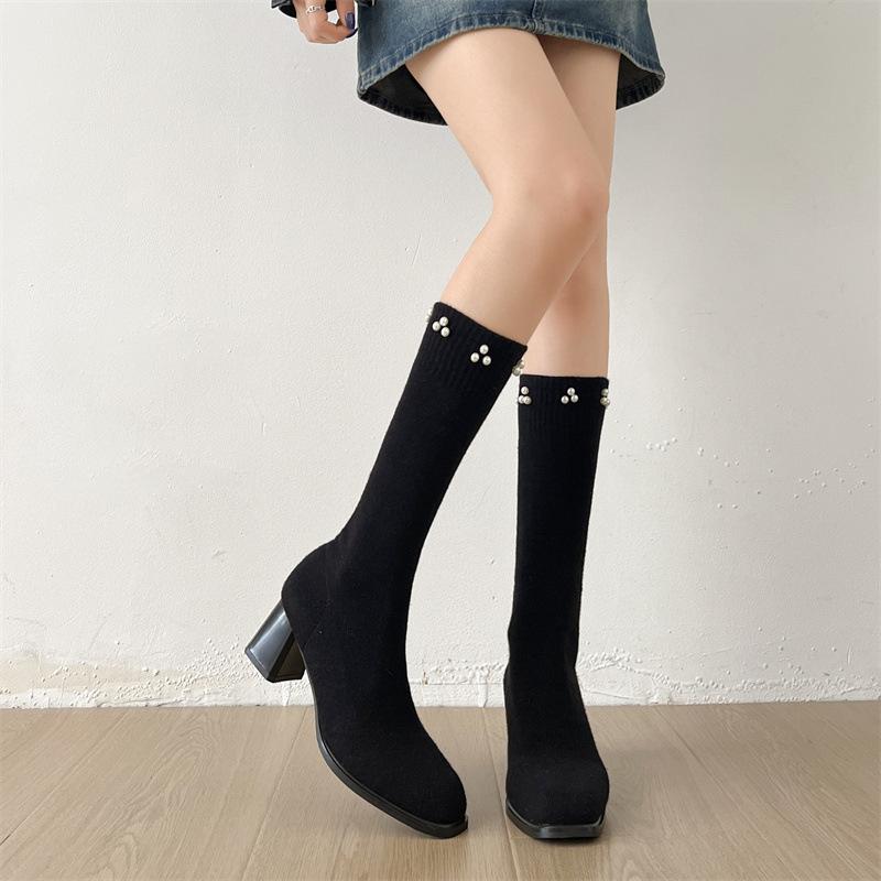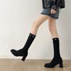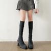 Flying Woven Thick Heel Small Square Head Thin Boots 2025 Autumn New Thick-soled Casual Versatile Knee Boots Elastic Socks Boots