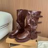 Pile Fashion Wind 2025 Spring and Autumn New Retro Streamer Medium Boots Women's Boots Western Knight Boots Cowboy Boots