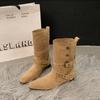Pointed Low-heeled Small Short Boots Women's Shoes 2025 New Spring and Autumn Single Boots Retro Belt Buckle Medium Tube Pants Tube Boots