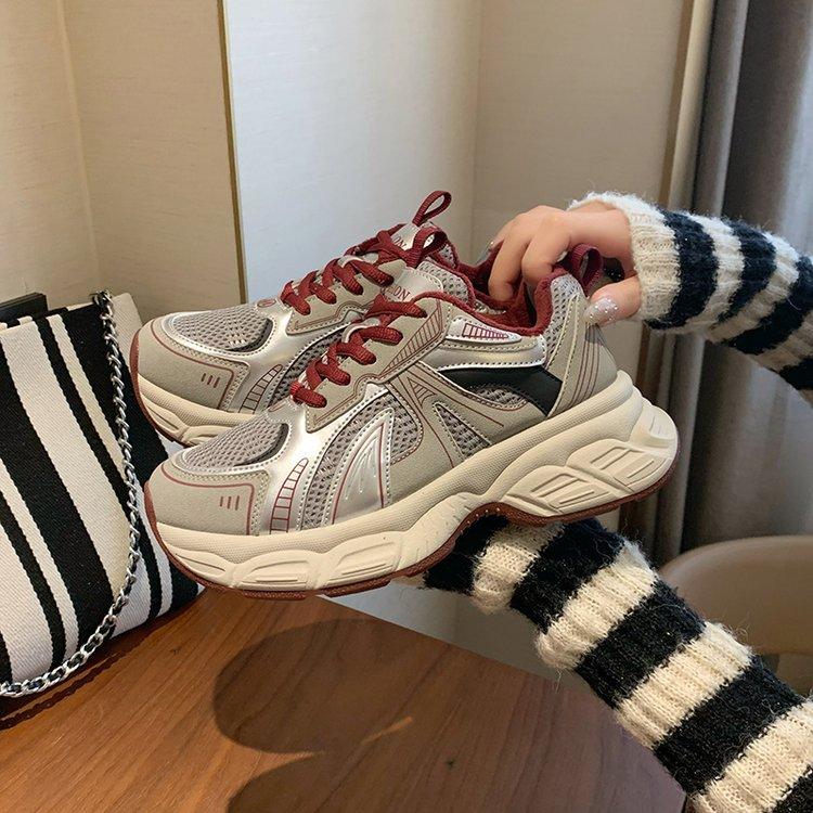 Platform Dad Shoes for Women 2025 Autumn and Winter New Retro Versatile Casual Ankola Red and Silver Heightening Sneakers for Women