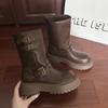 British Style Platform Belt Buckle Martin Boots Women's 2025 Autumn New Maillard Retro Versatile Heightening Locomotive Boots