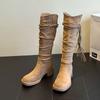Coarse Heel Fringed Boots Maillard Boots Children's New Spring and Autumn Western Cowboy Stack Boots Tall Knight Boots
