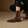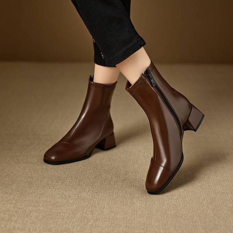 Autumn and Winter Solid Color Side Zipper Large Size Fashion Boots New Round Head Rubber Sole Medium Heel Leather Surface Women's Boots Thick Heel M