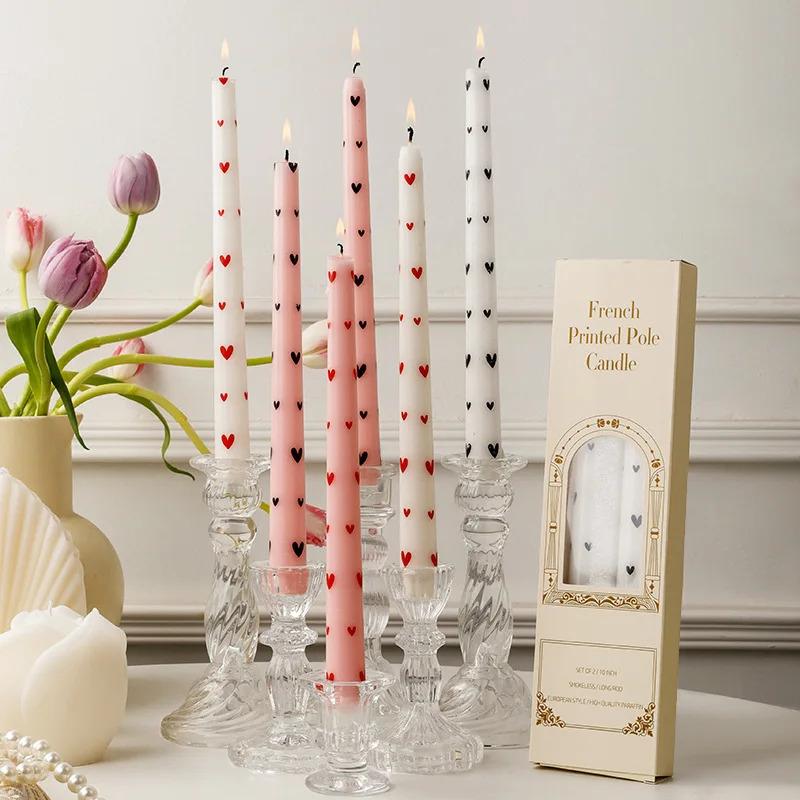Romantic 2PCS 25CM Long Pole Printed Candles - Wholesale Smokeless Column Wax, for Wedding, Valentine's Day & Banquet