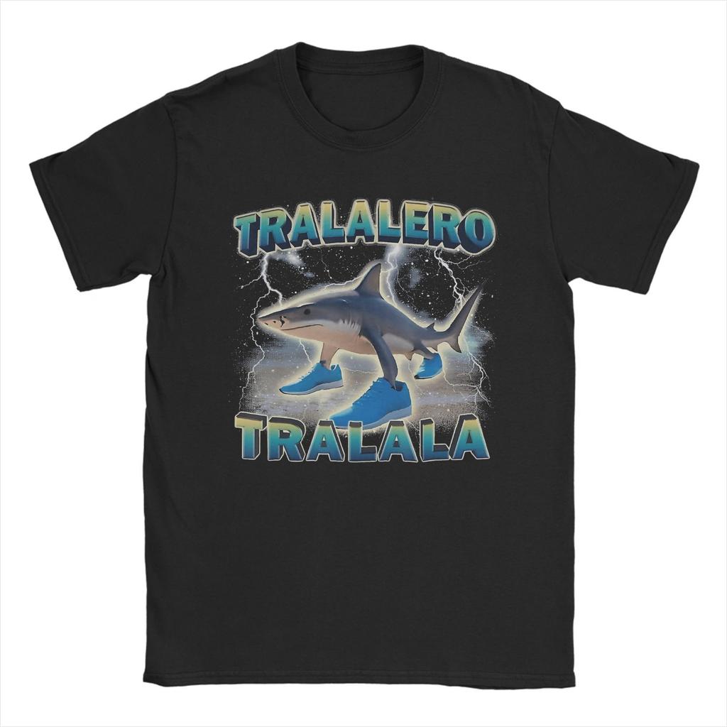 Printed Tralalero Tralala Funny Shark Meme T Shirt For Unisex 100% Cotton T-shirts Short Sleeve Clothes