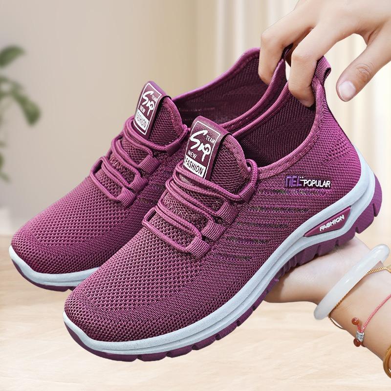 Shoes Female Couple Large Size Lace-up Sneakers Soft-soled Women's Shoes Fly-woven Breathable Casual Shoes Shallow Mouth Thick-soled Single Shoes