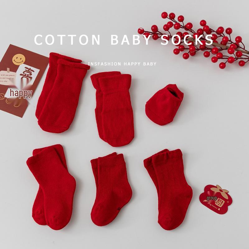 Combed Cotton Red Socks for Newborns & Toddlers: Small/Medium, All Seasons