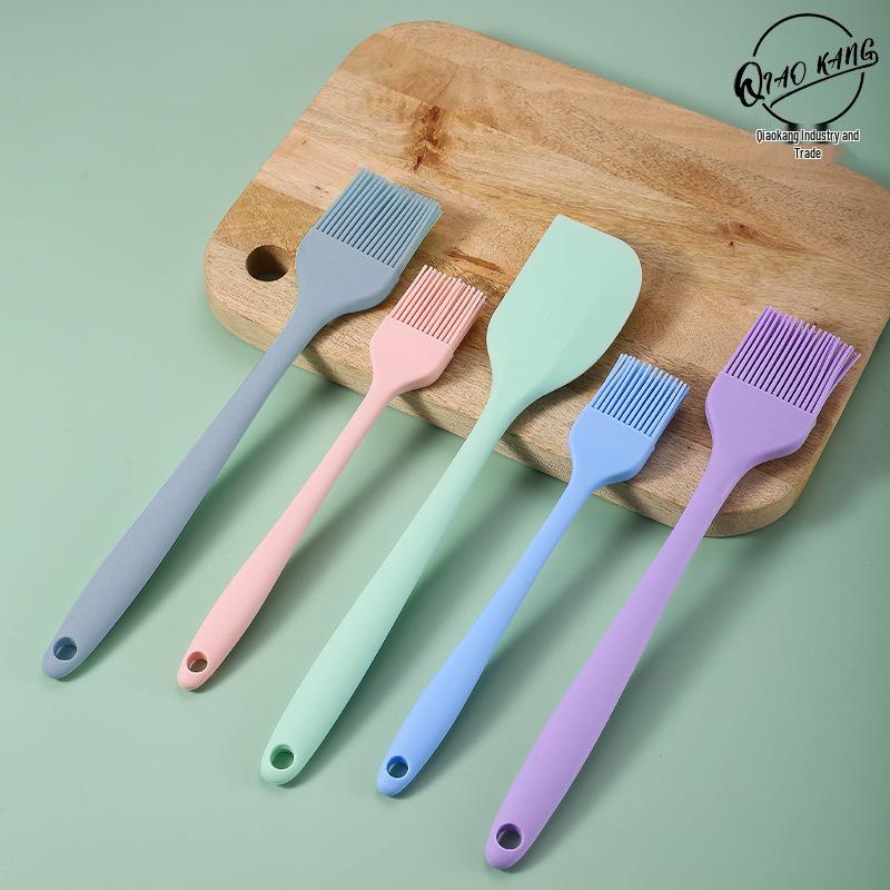 Silicone Cooking Utensil Set: Oil Brush, Scraper, Basting Brush, Ladle, Spatula, Tongs, Cream Spatula (Mini Set, One-Piece Design)