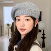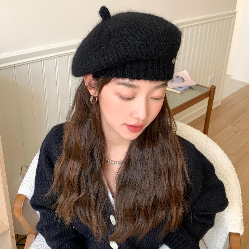 Women's Korean Style Woolen Beret: Versatile, Solid Color, Knitted, Warm, Windproof, with Metal Label for Autumn and Winter
