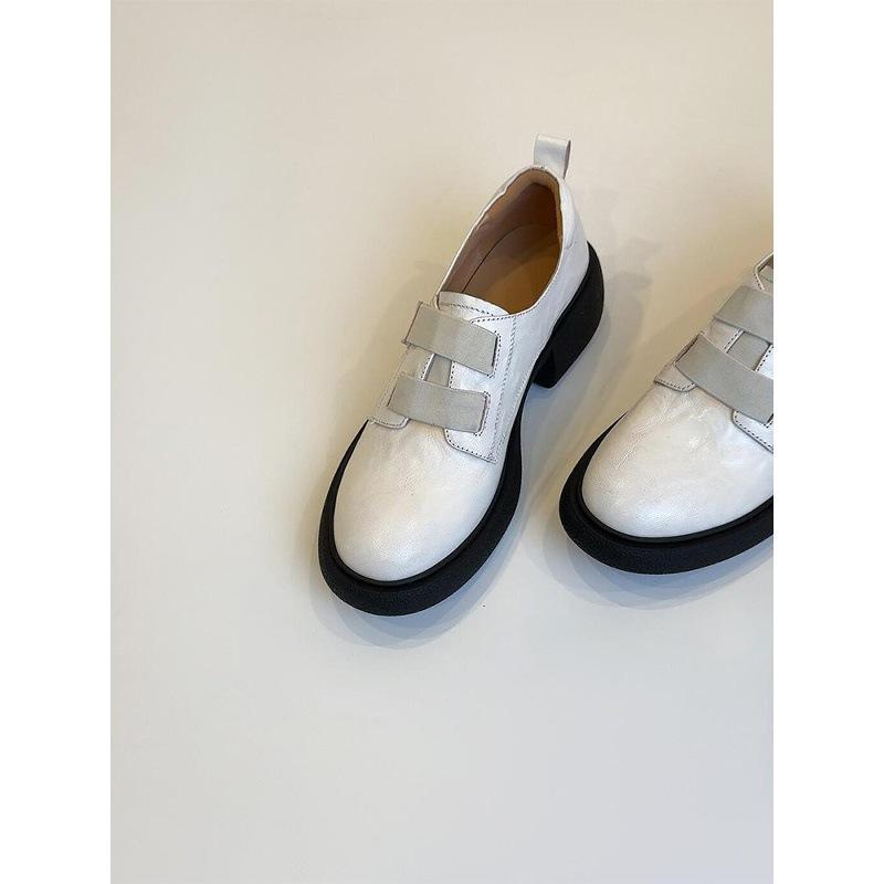 Sheepskin Version~ British Style Platform Velcro Loafers Women's One-pedal Leather Comfortable Thick Heel Silent Small Leather Shoes